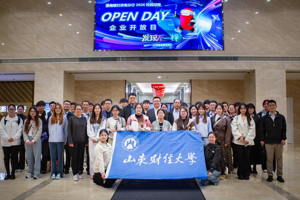 活动伊始,在浙商银行济南分行党委委员、副行长礼雁冰,人力资源部总经理于建平等负责人的陪同下,师生一行先后参观了分行的文化展览馆和办公休闲区域,全方位感受了浙商银行济南分行自2010年在山东设立以来,在专业服务能力与金融科技创新融合发展上的突破与成就。同学们更加直观地了解银行工作实况,体悟企业文化,拓宽了行业视野。