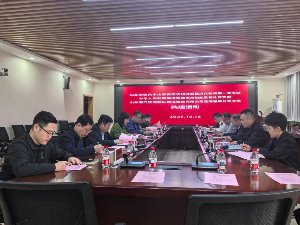 10月16日,山东省区块链金融重点实验室第一党支部与济南海事局船舶监督处党支部、山东港口陆海国际物流集团陆海通平台党支部开展支部联合共建活动。济南海事局副局长上官好敏、山东港口陆海国际物流集团客户共享服务中心总经理黄克峰等一行6人莅临我校参加共建活动。山东省区块链金融重点实验室执行主任沈万芳、总工程师杨峰等教师参加活动。活动由实验室党委书记武方安主持。