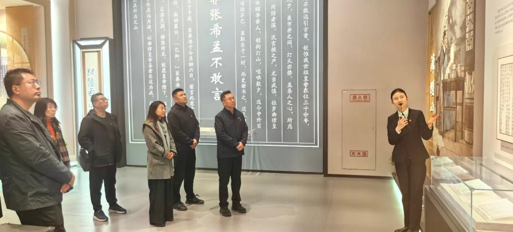 在讲解员的引导下,大家依次参观了“一代名臣”“为政忠告”“散曲大家”“水月松风”四大主题展区,系统回顾了张养浩“以布衣入京,历登枢要”的仕途生涯,深切感悟其“清廉自守、心系苍生”的高洁品格。当“兴,百姓苦;亡,百姓苦”的千古绝唱映入眼帘,张养浩深沉的民本情怀与新时代“以学生为本”的育人理念产生了跨越时空的共鸣。展陈中,张养浩历任各职时的廉政事迹、《三事忠告》中的为官箴言,尤其是“吏不畏吾严而畏吾廉,民不服吾能而服吾公”的执政智慧,引发了老师们的深入思考。