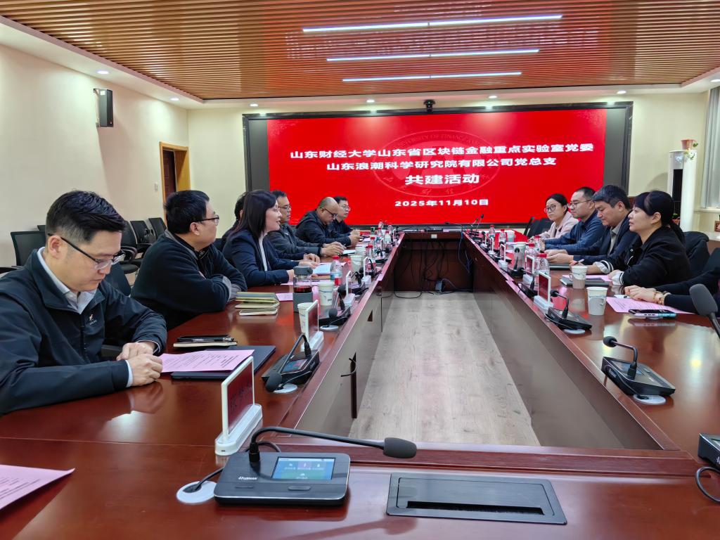 为深入学习贯彻党的二十届四中全会精神,创新基层党建工作载体,持续深化校企合作,11月10日,山东省区块链金融重点实验室党委与山东浪潮科学研究院有限公司党总支开展联合共建活动。浪潮科学研究院有限公司党总支书记、副院长魏子重一行5人莅临我校参加活动。实验室主任刘培德、党委书记武方安、总工程师杨峰,学科建设办公室副主任兼计算机与人工智能学院副院长张云峰等参加活动。活动由实验室执行主任沈万芳主持。