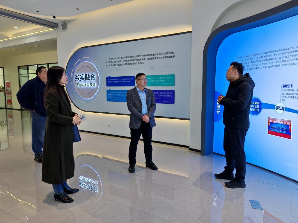 在刘朋陪同下,学院一行首先参观了企业数字技术展厅、实训室、多功能教室等,详细了解公司在数据运营、智慧城市、工业互联网等领域的前沿技术布局与创新应用成果,以及对实习生的需求和培养计划。