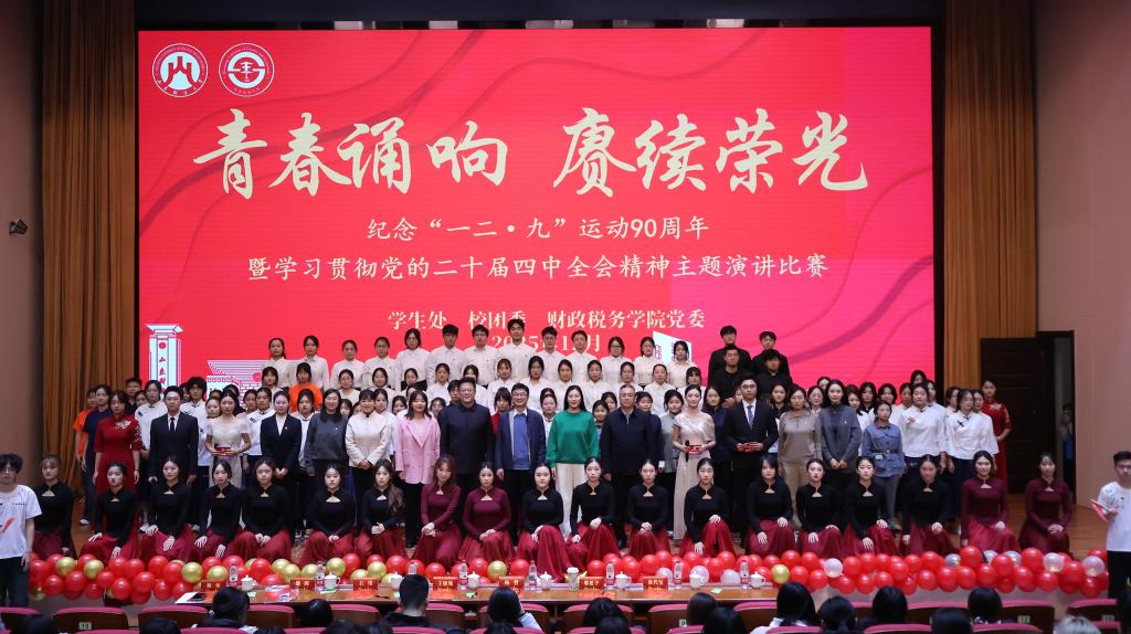 12月4日下午,由学生工作部、校团委与财政税务学院联合主办的“青春诵响 赓续荣光”纪念“一二・九”运动90周年暨学习贯彻党的二十届四中全会精神主题演讲比赛决赛,在章丘校区图书馆报告厅举行。学生工作部部长杨哲、圣井校区管理办公室主任王晓强、校团委副书记邢夏子担任评委,财政税务学院师生代表观看比赛。