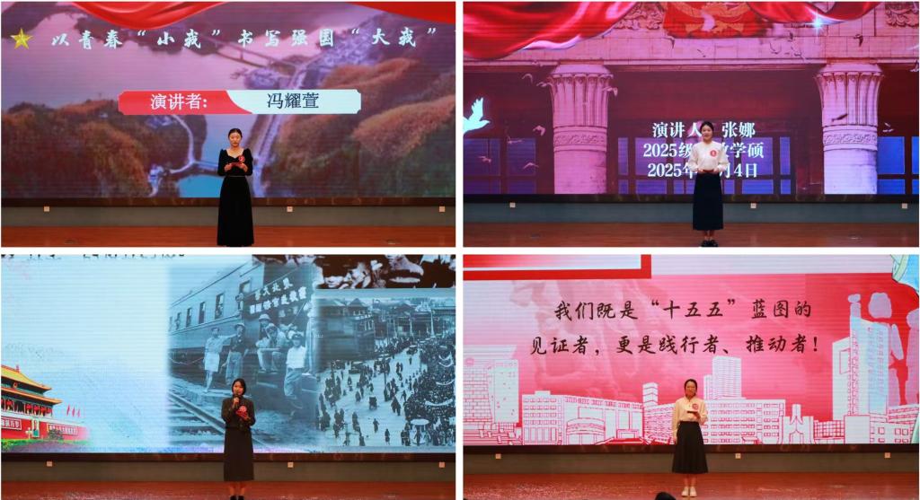 本次比赛经初赛、复赛层层选拔,11组优秀选手(团队)脱颖而出晋级决赛。比赛中,选手们以饱满热情与昂扬姿态展开角逐:或深情回顾“一二・九”运动峥嵘岁月,以饱含情感的演讲唤醒历史记忆,致敬先辈奋斗初心;或通过讲述英雄杨靖宇和沂蒙精神,生动诠释了“一二·九”精神在新时代的延续与焕新;或结合工匠精神、九三阅兵、全运会风采等时代主题,展现了当代青年将爱国热忱转化为实干担当的生动实践;更有选手紧扣党的二十届四中全会精神,立足“十五五”发展蓝图,畅谈青春理想与时代责任,发出新时代青年勇担重任、奋进新征程的坚定誓言。两组参赛团队以情景剧形式再现革命先辈的铮铮铁骨与民族大义,赢得现场阵阵掌声。