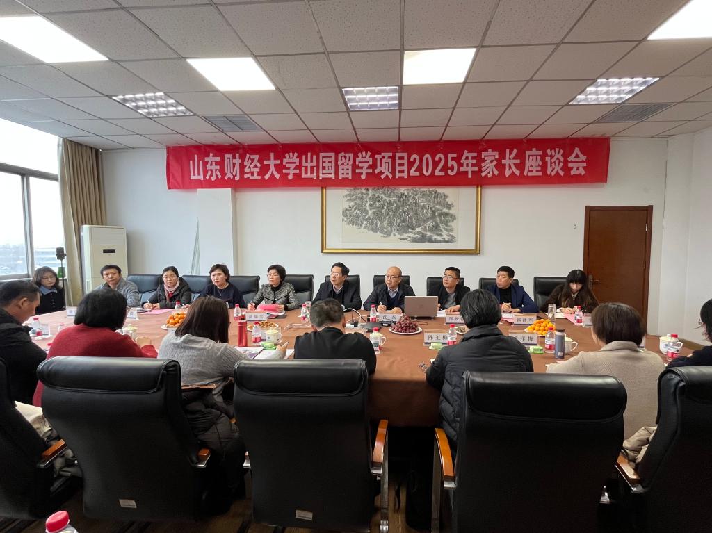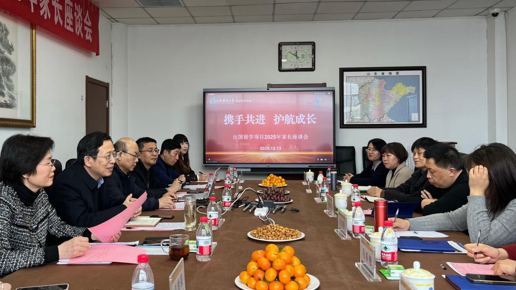 徐明春在讲话中指出,山东财经大学出国留学项目始终把“培养具备全球视野、跨文化沟通能力,能在国际舞台立足的优秀人才”作为核心目标,着力构建从“课程适配”“语言提升”“申请指导”到“行前准备”的全链条支持服务体系。他从课程体系搭建、语言与学术能力提升、留学申请指导、行前准备与后续支持、就业选择等多个方面对项目支持服务内容进行了详细介绍,对进一步做好家校共育提出了要求。