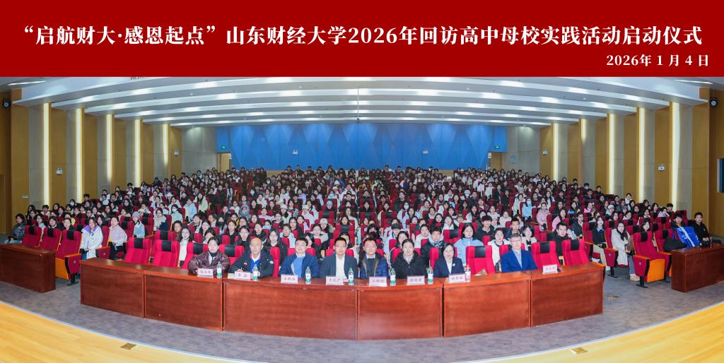 1月4日上午,山东财经大学“启航财大·感恩起点”回访高中母校社会实践活动启动仪式在章丘校区大学生文化活动中心报告厅举行。教务处处长、招生办公室主任于文广,校团委书记王晓迪,圣井校区管理办公室主任王晓强,党委宣传部副部长张艳霞,学生工作部副部长李磊,教务处副处长李亚伟,招生办公室工作人员及回访团队四百余名队长参加启动仪式。仪式由李亚伟主持。