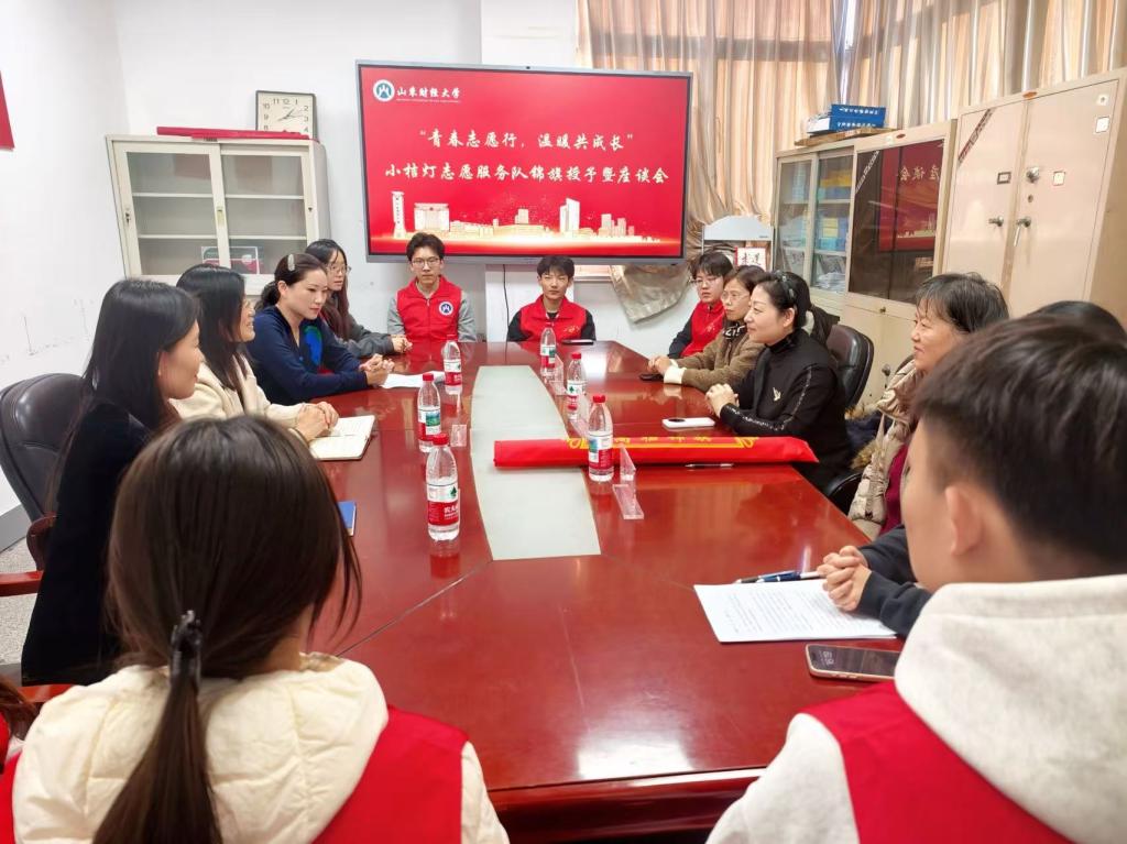 12月25日下午,统计与数学学院“青春志愿行,温暖共成长”小桔灯志愿服务队锦旗授予仪式暨座谈会在舜耕校区举行。舜玉社区党委书记孙怡、家长代表,统计与数学学院党委副书记李云枝、团委书记张秀萍、辅导员杨雅琳及志愿者代表参加活动。