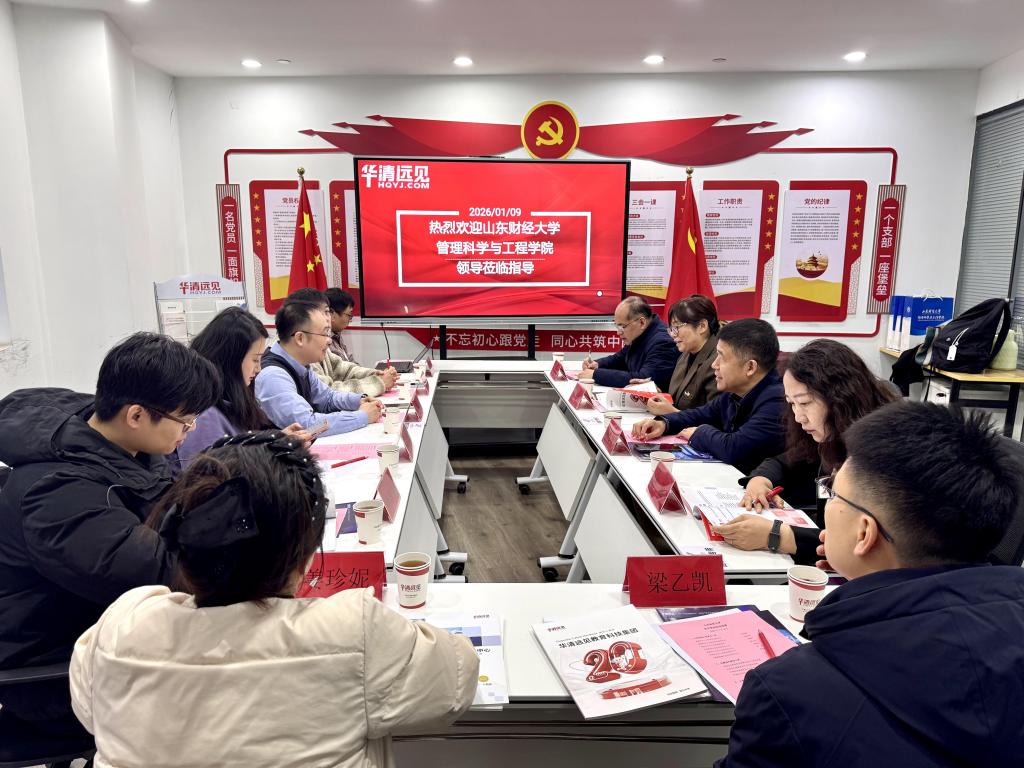 1月10日,管理科学与工程学院党委书记崔东峰、副书记刘思锋、副院长马建华等一行,赴北京华清远见科技发展有限公司济南分公司开展“访企拓岗”专项活动。华清远见集团副总裁兼济南分公司总经理李鹏、副总经理孙安琪、研发总监焦岳、人工智能技术部经理吴昊热情接待了学院一行。