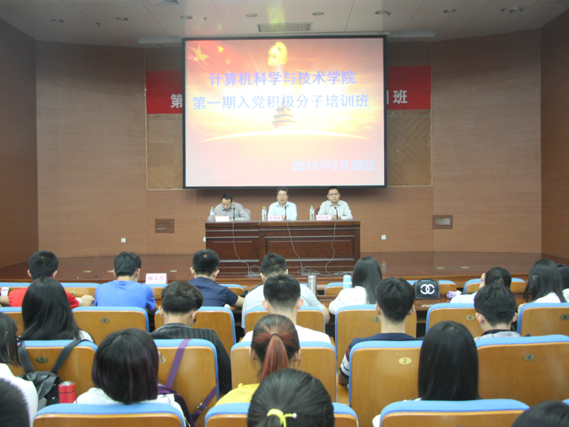 5月28日,计算机科学与技术学院在燕山校区逸夫楼报告厅举办了第一期入党积极分子培训班开班仪式。学校党委组织部副部长李孟顺,计算机科学与技术学院党委书记邵文涛、副书记李洪星参加了仪式,邀请济南大学李朋忠教授、学校党委组织部组织员管理科科长杨立忠、6月4日邀请山东高校德育研究中心姚昌主任担任主讲人,为学院300多名党员和入党积极分子开展了两场讲座。