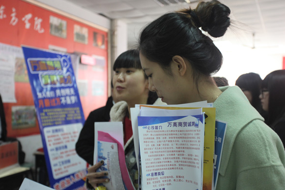 12月12日,东方学院2016届毕业生校园双选会举行。来自北京、天津、浙江及全省各地的140多家用人单位参会,共提供近3000余个就业岗位,其中财会类岗位700余个、营销类岗位400余个、电子商务类300余个、艺术设计类及其他岗位1500余个。双选会吸引了东方学院及周边高校3000余名毕业生参加。初步统计,东方学院约400余名毕业生与用人单位达成了初步的实习就业协议。中国人寿、太平洋保险、北大青鸟、苏宁云商商贸、鲁南制药等多家知名企业也前来招贤纳士。