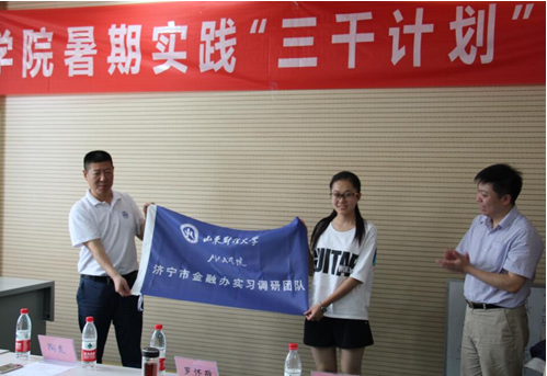 7月10日,我院在舜耕校区研究生教学楼MBA案例室举行了暑期实践“三千计划”授旗仪式,团委书记刘奇耀,学院院长陶虎,副院长罗怀敬、苏昕、李琪,润华集团、丁丁贷、申万宏源证券等校友企业代表,以及8支实习实践调研队队长、副队长等30余人参加了授旗仪式。授旗仪式由学院学位与学员管理部主任孔鹏志主持。