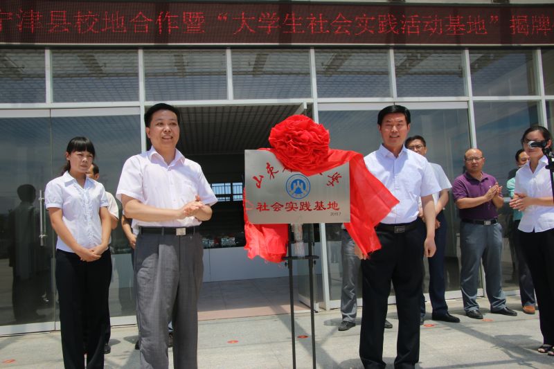 7月3日上午,计算机科学与技术学院与宁津县政府校地合作暨大学生社会实践基地揭牌仪式在宁津县科技创新创业园举行。校团委书记刘奇耀与宁津县委副书记、县长高秀鹏为实践基地揭牌。计算机科学与技术学院院长尹义龙、党委书记邵文涛、副书记李洪星和宁津县副县长李大宇、李宏东,县经济合作局、科技局等有关负责人参加揭牌仪式。仪式由副县长李大宇主持。