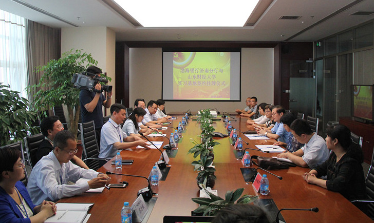 7月10日,山东财经大学与渤海银行济南分行社会实践基地协议签约仪式在渤海银行济南分行举行。山东财经大学会计学院党委书记张涛、副书记崔东峰、金融学院党委书记唐磊、副书记徐明春和渤海银行济南分行副行长王铁华、内控管理部总经理赵福强、业务营运部总经理孙国华、综合管理部总经理韩纪宏、个贷营销中心总经理晋江伟、个贷审批部总经理于立宏、资讯科技部总经理梁洁敏出席仪式。签约仪式由渤海银行济南分行人力资源部总经理、会计学院92级校友季惠芳主持。