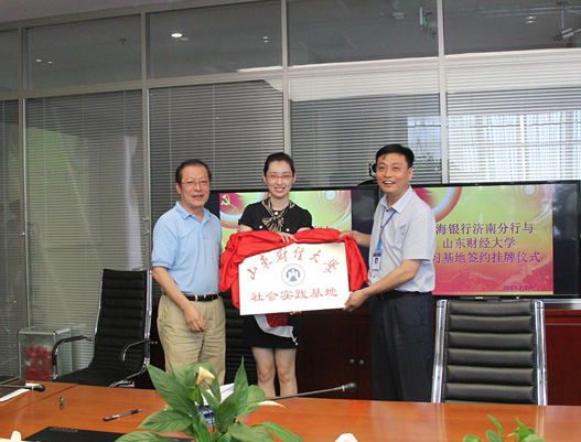 仪式上,渤海银行济南分行副行长王铁华分别与金融学院党委书记唐磊、会计学院党委书记张涛签署了社会实践基地协议,并为实践基地揭牌。