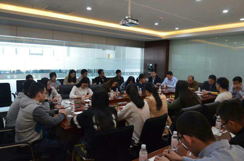 翟士龙带领师生参观了亿盛金控集团电子监控中心、业务办公室、会议培训室、读书室和健身房等,他热情地为大家介绍了亿盛金控集团的业务种类、竞争优势、企业文化和员工福利等,师生们认真听取并与翟士龙进行了沟通交流,气氛十分融洽。
