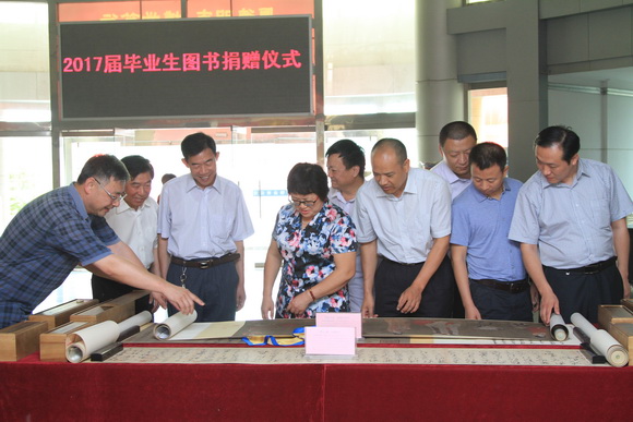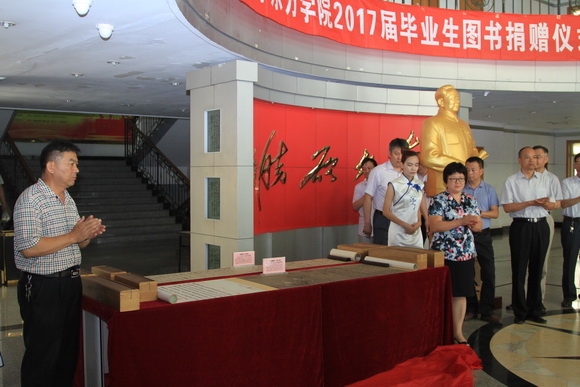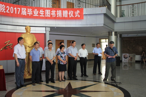 6月22日上午,东方学院举行2017届毕业生留念工程图书捐赠仪。东方学院党委书记宫淑瑰,副院长杨子华、各部门负责同志和毕业生代表们出席了揭幕仪式。仪式由东方学院学团工作处处长王伟主持。