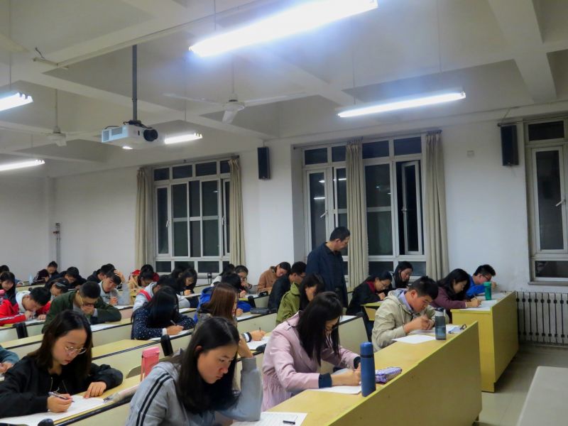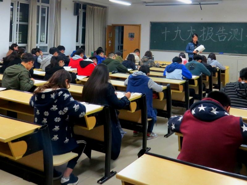 近日,金融学院本科生和研究生以各种形式深入学习十九大报告精神。为以考促学,10月26日,金融学院在舜耕和圣井校区同时进行入党积极分子十九大报告百题测试,考试采用集中考试的形式,金融学院共有664 名本科生和265名研究生入党积极分子参加本次集中测试。圣井校区的测试由金融学院党委副书记徐明春和2016级辅导员王亚男老师进行监考。