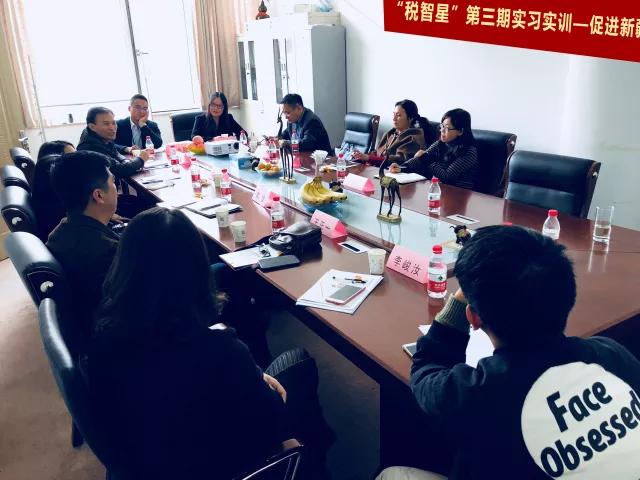 10月31日下午,“税智星”第三期实习实训—促进新疆少数民族毕业生就业大会在税智星天逸科技有限公司举行。出席本次会议的嘉宾有:财政税务学院党委副书记汤长胜,学院财政系主任赵宝廷,学院税收系主任高凤勤,学院税收系副主任郭健,财政税务学院团委书记王正一,2014级财政税务学院就业辅导员李峻汝,新疆教育厅内派管理老师玛依努尔•阿不里米提,税智星天逸科技有限公司副总经理赵静,税智星天逸科技有限公司经理谢伟、曲哲、楚玉杰。三位新疆少数民族毕业生也出席了本次会议。