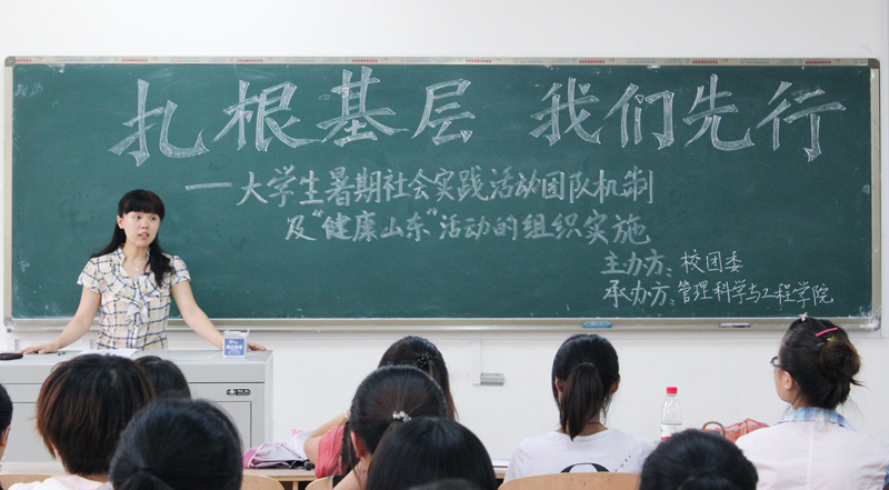 6月20日,由校团委主办、管理科学与工程学院团总支承办的“大学,大学堂”青年博士论坛第37期暨山东财经大学大学生社会实践活动培训系列讲座第三讲分别在明水校区和圣井校区举行。山东科技大学博士研究生、管理科学与工程学院学工办主任兼团总支书记张贞梅就“大学生暑期社会实践活动团队运作机制及健康山东活动的组织实施”进行了讲解。