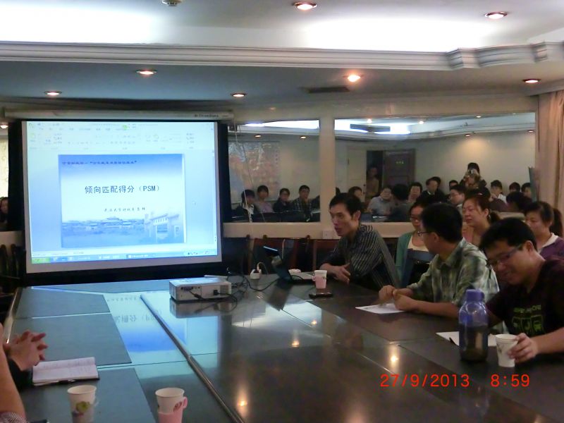 在《公共部门经济学发展趋势及启示》的报告中,卢洪友首先系统的梳理了财政学发展历程,指出了公共部门经济学是财政学发展的必然趋势。在此基础上,分析了公共部门经济学的前沿研究方向以及今后发展的两个侧重点。他联系中国的实际情况,提出要从效率和公平两个角度出发深化研究主题。在《倾向匹配得分技术分析》的报告中,龚锋介绍了倾向匹配得分技术的适用范围、基本原理、基本假设、数据要求以及实施步骤,并结合具体数据现场演示了倾向匹配得分技术的使用方法。同时,卢洪友教授和龚锋副教授与现场的师生进行互动,并热情耐心回答师生问题。