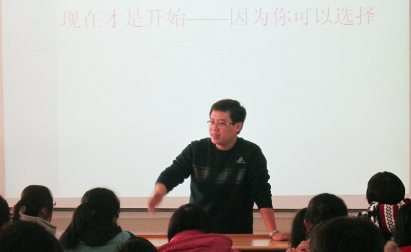 王琳首先提出“现在才是开始——因为你可以选择”的观点,阐述了大学生刚入学的心理想法并给出三点建议。他通过提问方式,化抽象为具体,阐述了“人为什么活着”这个富有哲理性的问题;通过分析当下与经济有关的职业选择,指导同学们正确认识保险专业。他在工作、考研、出国未来就业的三条道路选择上,认为同学们要根据自身特点制定合理目标,在大学学习中有的放矢,为今后自身发展作准备;他强调,同学们不要依赖别人,首先发现自己应该做什么,提倡大家合理规划,快乐充实地度过大学生活。