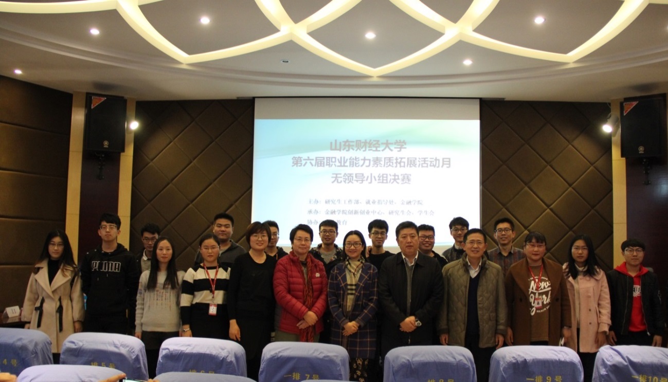 职场竞秀,谁与争锋。11月17日下午,由党委研究生工作部、就业指导处、金融学院主办,金融学院创新创业中心承办的第六届职业能力素质拓展活动月系列活动之无领导小组决赛在六号楼报告厅成功举办。我校党委研究生工作部部长岳德军、就业指导处副处长杜丽娜、金融学院党委副书记徐明春、金融学院党委副书记范志毅、中公教育第八研究院教研室主任刘晓凯、资深讲师郭莉亲临现场并担任评委。