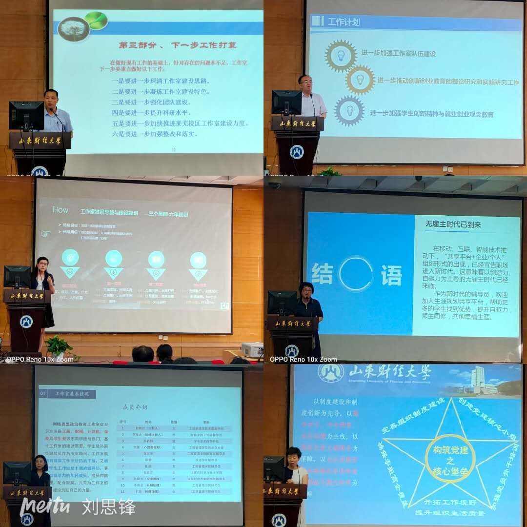 随后,“大学生就业与创业工作室”主持人周广春、“辅导员团体辅导能力提升工作室”主持人赵雅莉、“大学生职业生涯规划工作室”主持人史萌、“网络思政工作室”主持人彭艳红、“红色基因育时代英才工作室”代表许静等五个校级工作室依次展示了其工作内容和取得的成绩,并对下一步的发展进行了展望和规划。