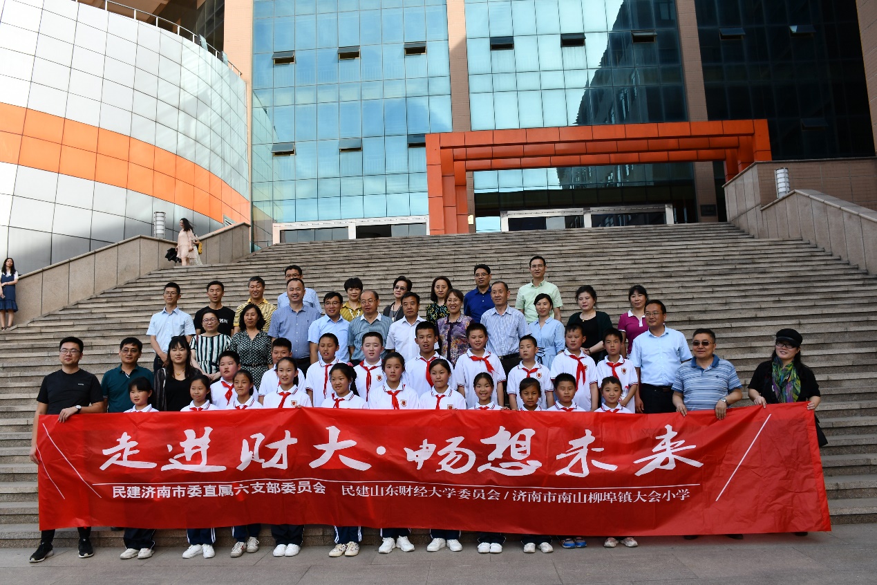 民建济南市委直属六支部委员会、济南市南山柳埠镇大会小学、民建山东财经大学委员会、我校合作发展处(校友工作办公室)有关人员,部分学生代表等参加活动。