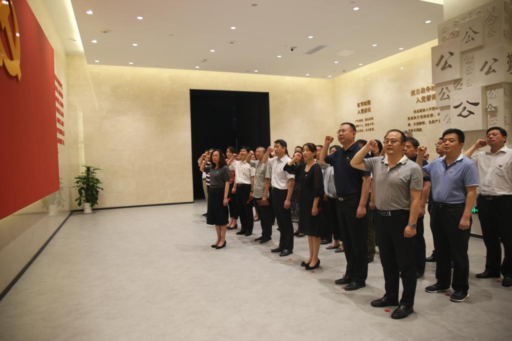 在宣誓厅里,全体纪检干部面对党旗集体宣誓,重温入党誓词,进一步坚定了理想信念。