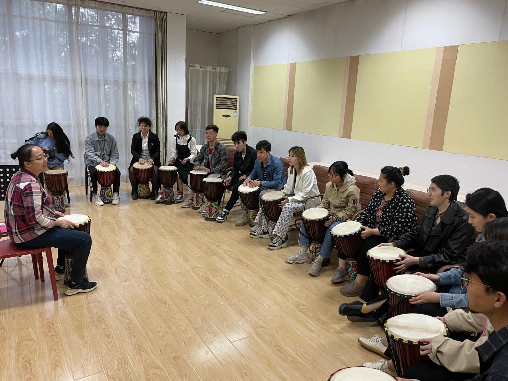 最后,团辅活动以轻松活跃的氛围结束,来自新疆维吾尔族的2017级公共管理学院学生帕孜莱提说“作为马上步入社会的毕业生来说,压力真的很大,这次特别的体验,让我的压力减了不少。”“通过这次活动,我不仅感受到了非洲鼓的魅力,还认识了很多来自不同民族、不同地区的朋友,中华民族一家亲,我们要像石榴籽一样紧紧团结在一起。”来自贵州苗族的2020级法学院学生杨彪这样说道。