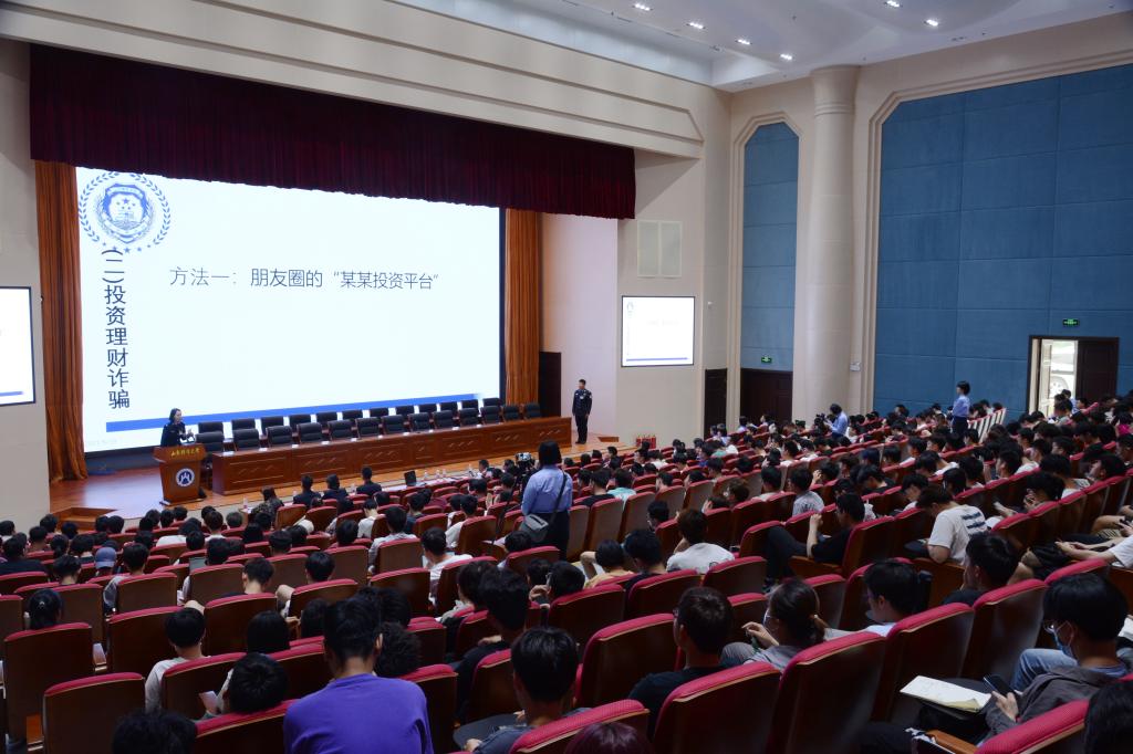章丘反诈中心代吉瑞主任对电信诈骗案件侦破工作难度做了介绍,因犯罪分子绝大多数都在境外,为公安追查带来非常大的困难,这就需要同学们防范于未然。章丘防诈中心韩冰主任表示,诈骗防范宣传非常重要,他相信在辅导员老师和学生干部的努力下,防范电信诈骗工作会有所起色。圣井派出所解雪峰所长提醒同学们要提高警惕,遇到意外情况要及时向警方求助,关注防诈官方的公众号能够获取更多的信息,使自己远离诈骗的圈套。