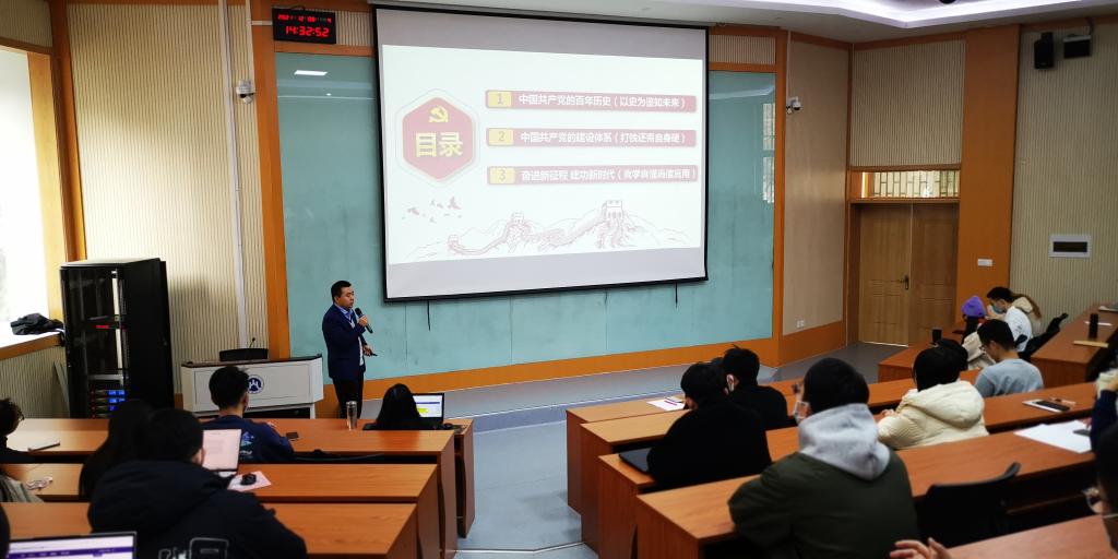 12月9日下午,山东财经大学党委组织部副处级组织员兼学校党校办公室主任、山东省优秀党务工作者、山东教育系统党建专家库专家杨立忠以“学党史,思党建,拥核心,成栋梁”为题,为研究生一年级新生上实践思政课。