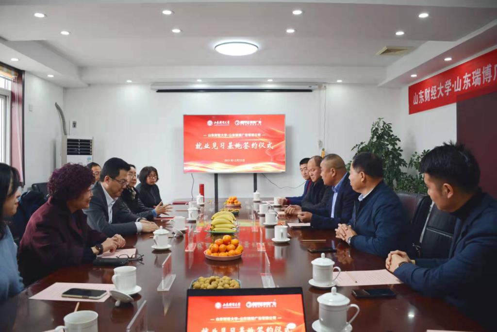 仪式在热烈友好的氛围中举行,合作双方先后致辞,分别介绍了单位基本情况、发展思路和对未来全面合作的美好愿景,共同签订了《山东财经大学大学生就业见习基地建设协议》并为见习基地揭牌。按照协议,校企双方将本着互惠互利、平等协作的原则,加强沟通与交流,山东瑞博广告有限公司将长期稳定地向学校提供就业见习岗位,并选派优秀的就业见习导师开展指导工作,优先选聘我校毕业生,积极参与我校艺术类学生的教育培养实践活动。