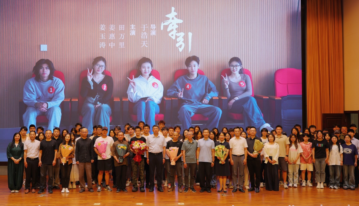 5月27日下午,由校团委、艺术学院主办,艺术学院2024届毕业生于浩天执导的微电影《牵引》首映式在圣井校区图书馆报告厅举行,副校长刘旻航出席并致贺词。山东师范大学美术学院教授、博士生导师、第11届北京国际电影节最佳男演员聂劲权,影片主人公、莱西木偶戏第五代传承人姜玉涛,青年电影制片人、导演魏白,学生家长于良永、赵影,校团委、艺术学院、圣井校区管理办公室负责同志,师生代表参加活动。原山东电视台主持人、《画说收藏》创办人高超主持首映式。