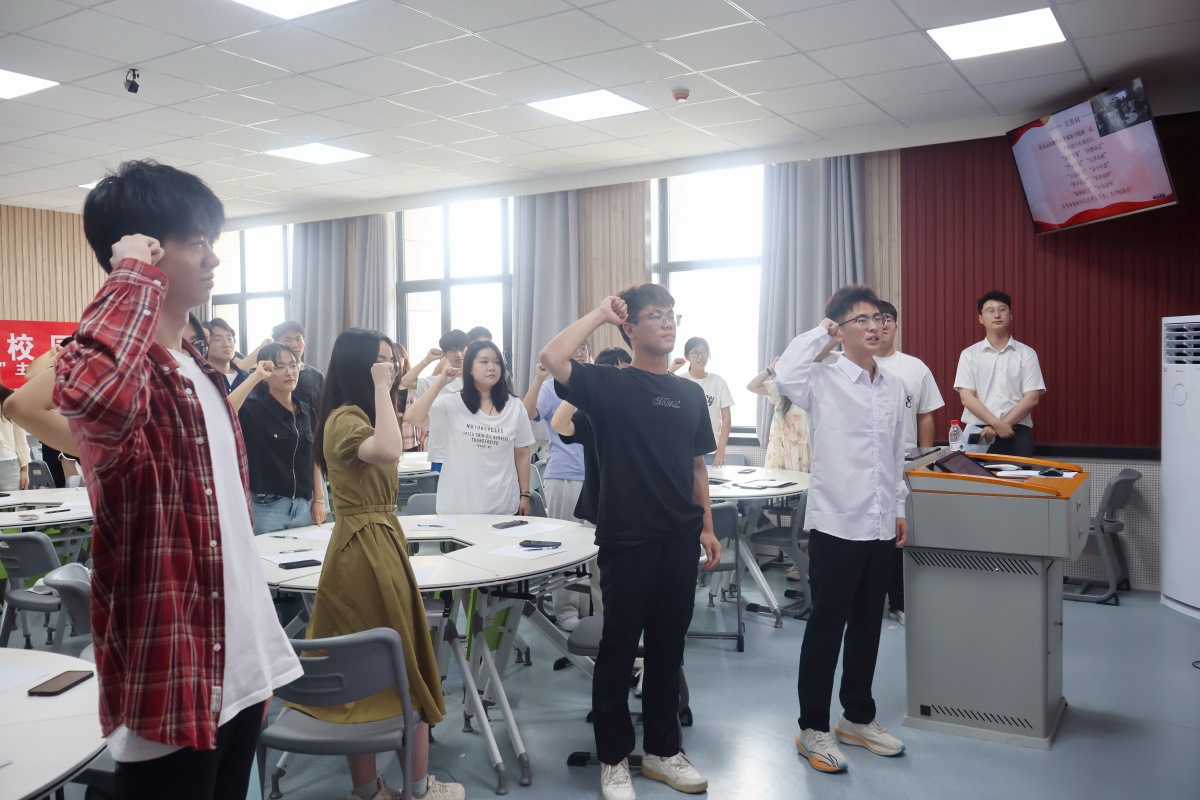 班会在辅导员张腾老师引领下开启,他通过创意短视频展示了校规校纪在校园生活中的重要性;通过“纪律之我见”小组讨论、“纪律故事分享”“纪律解读”“互动答题”等环节,使同学们深刻认识到遵守纪律的重要性和必要性;最后,在校领导的见证下,班级同学庄严宣誓并签署纪律承诺书。