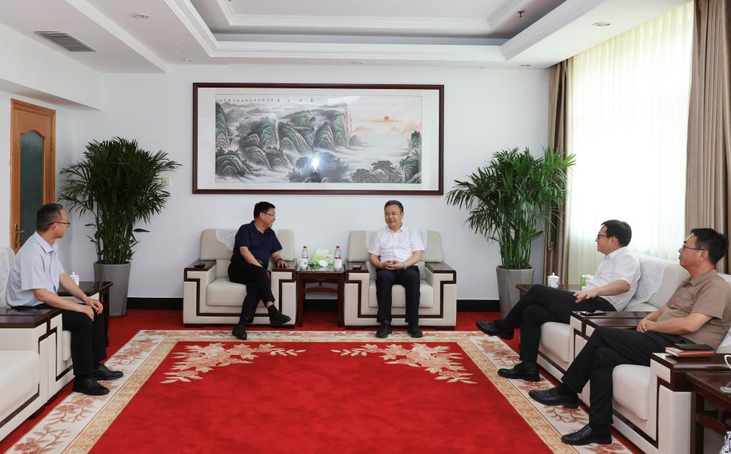 6月12日下午,安徽大学副校长周飞一行来访。学校党委书记查玉喜、校长洪俊杰、副校长赵奎皓在燕山校区会见来宾,并座谈交流。