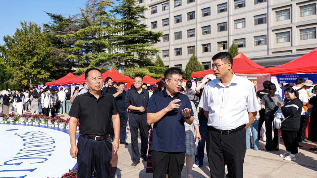 9月28日上午,“职约历下 职等你来”就业服务高校行山东财经大学专场招聘会在燕山校区举办,这也是我校2024年秋季首场校园双选会。我校副校长刘旻航和历下区副区长王若曦、济南市公共就业服务中心高校毕业生服务处处长侯广栋、济南市公共就业服务中心人力资源市场处处长潘冰,历下区委组织部副部长、区人社局党组书记、局长、一级调研员解伟,济南中央商务区管委会企业服务部部长陈一舟等到现场视察指导,了解用人单位需求,询问毕业生就业动态,并就校地合作与人才供需对接进行深入洽谈。