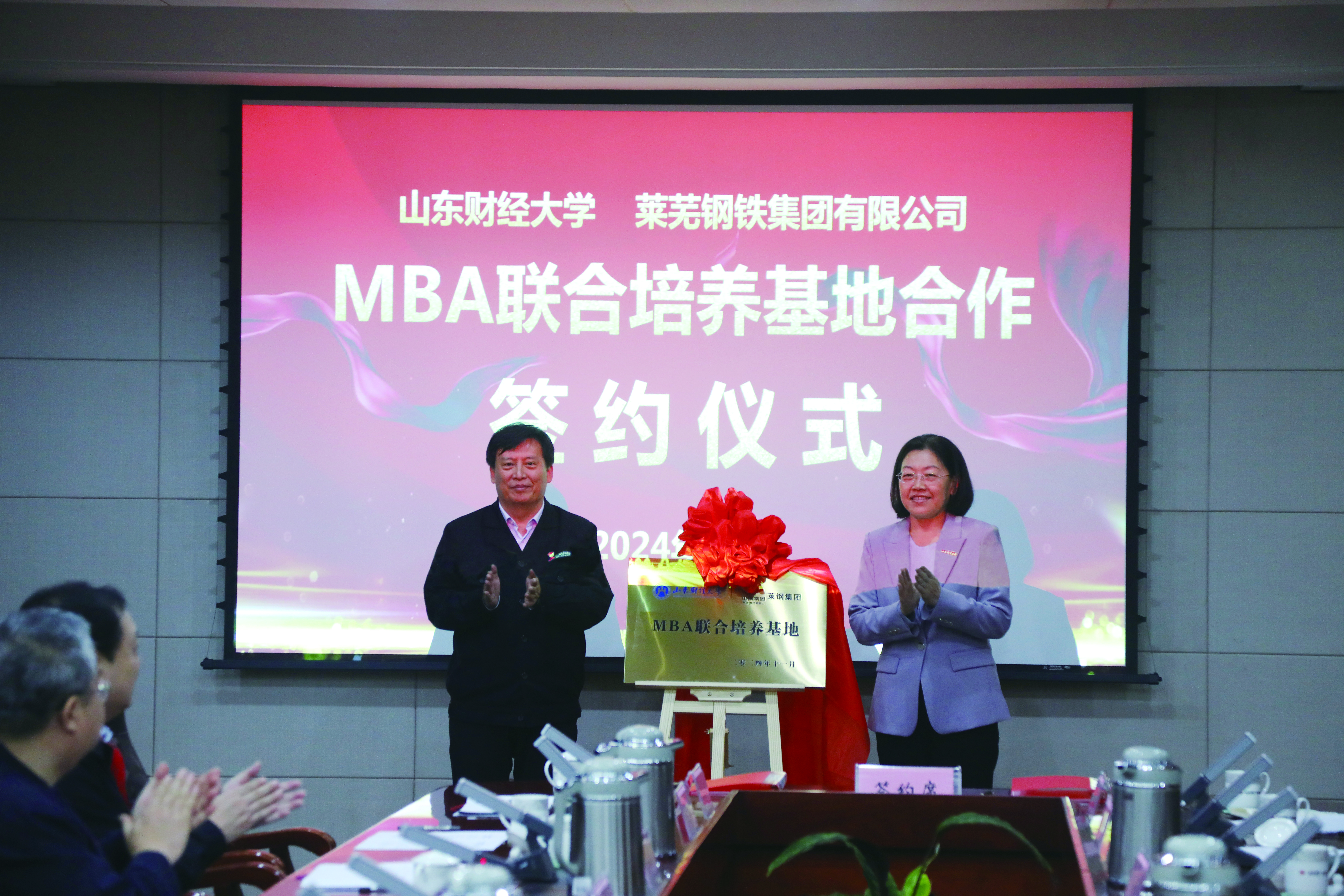 MBA学院院长彭留英与莱钢党校副校长、培训中心主任鉴继祥签署了《MBA联合培养基地合作协议》。张红霞和李洪建共同为MBA联合培养基地揭牌。