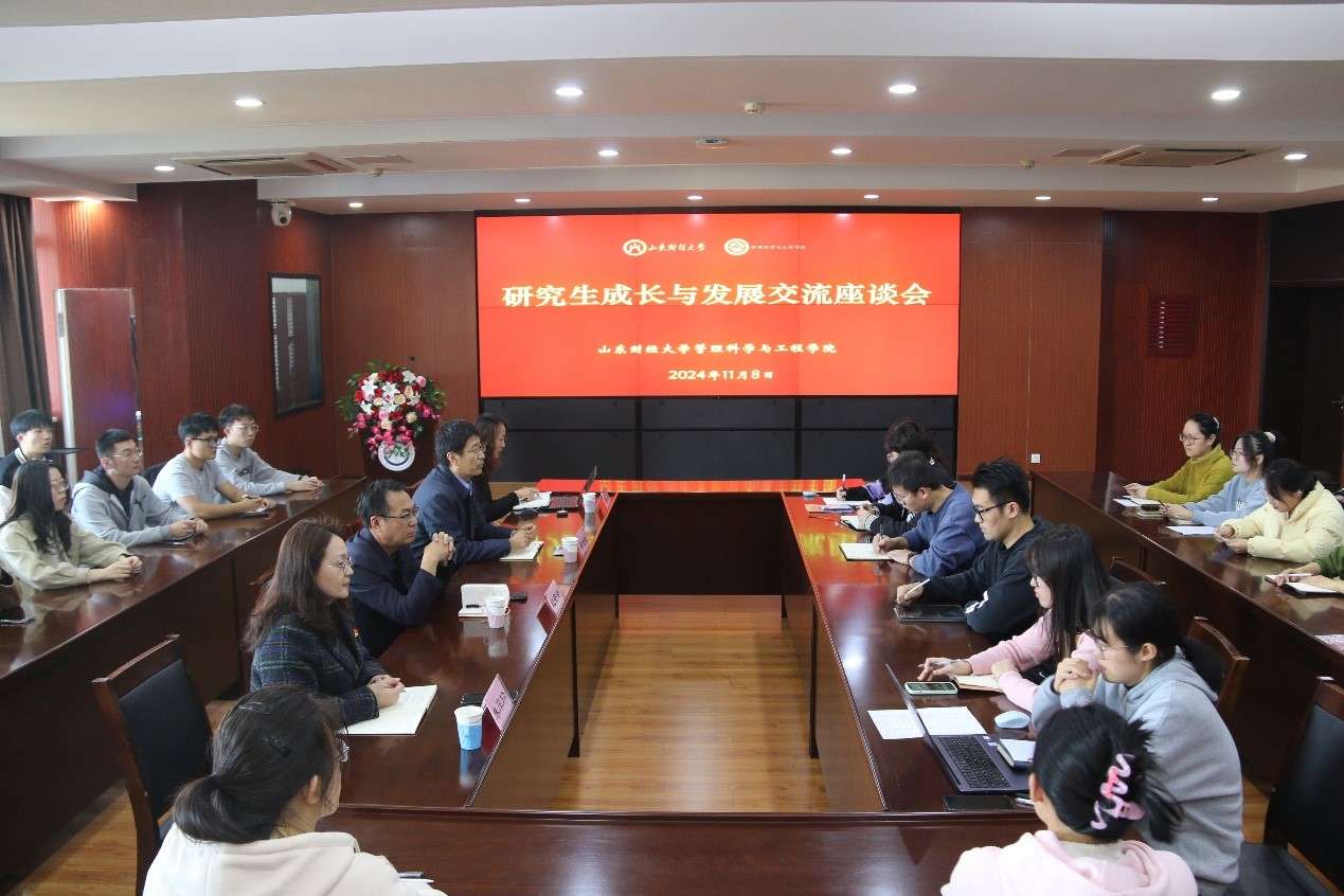 11月8日,校党委委员、副校长赵奎皓在燕山校区参加管理科学与工程学院研究生成长与发展交流座谈会。