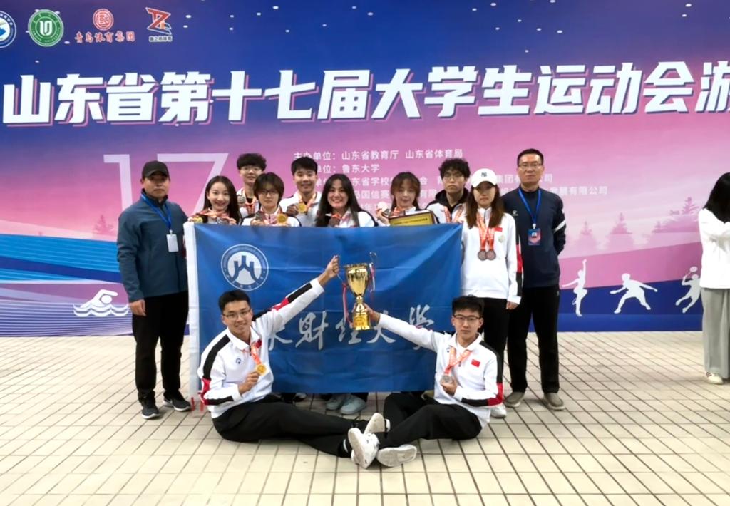 11月16日—19日,山东省第十七届大学生运动会游泳项目在青岛国信体育场游泳馆举办。经过两天激烈的角逐,我校游泳队以4金2银3铜的优异成绩,刷新我校在省大运会游泳项目上的最好成绩。我校代表队获甲组团体总分第三名,位列奖牌榜第二名,获丙组团体总分第五名,并获评“体育道德风尚奖”。