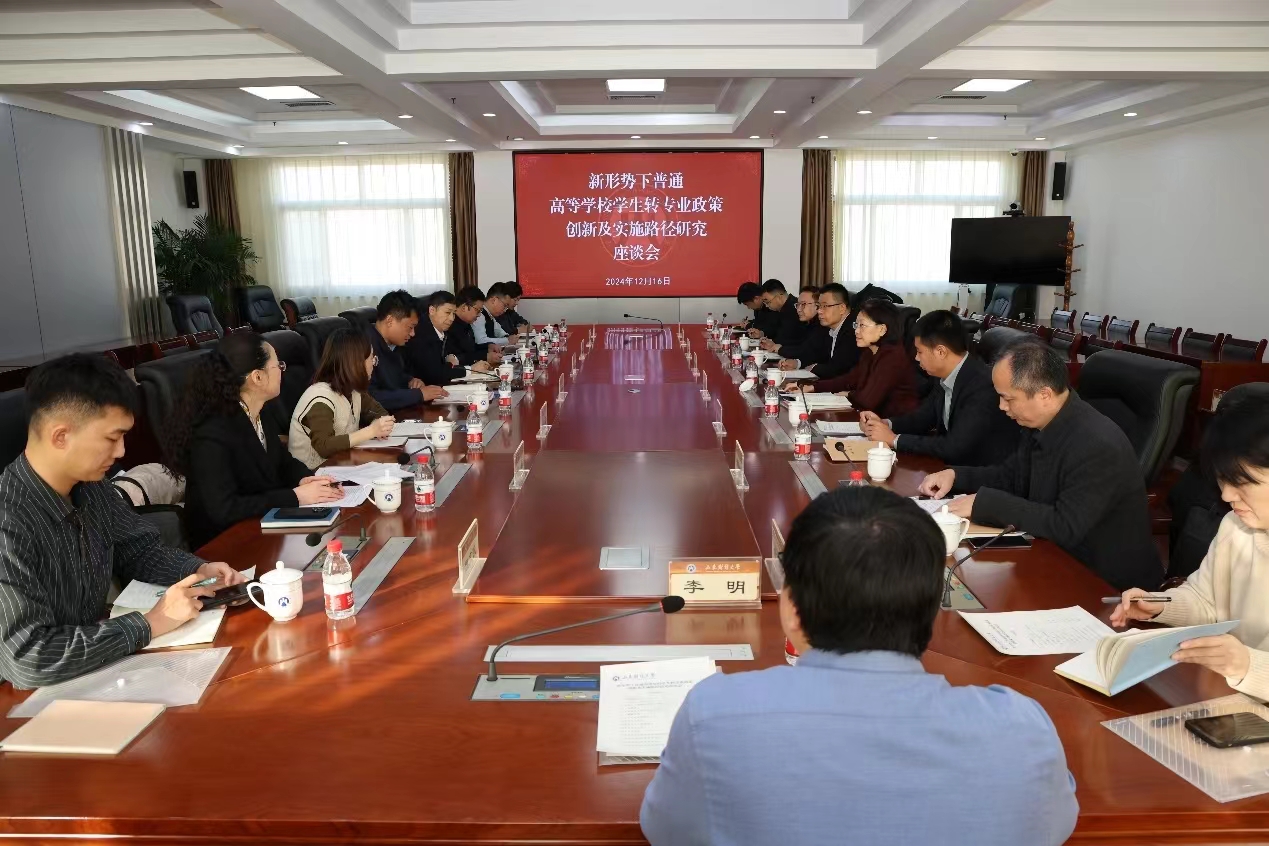 12月16日下午,教育部《新形势下普通高等学校学生转专业政策创新及实施路径》专项课题组调研座谈会在我校召开。副校长张红霞出席座谈会并讲话。座谈会由省教育厅高校学生处处长梁立波主持。