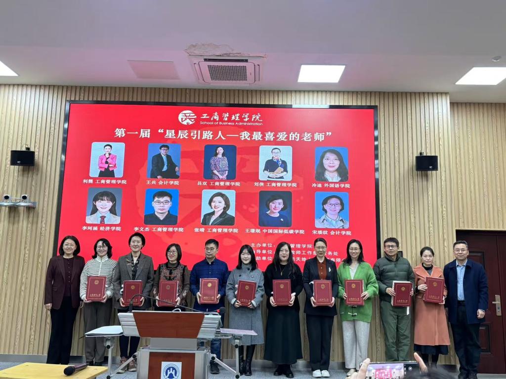 外国语学院、工商管理学院相关负责同志,全体获奖教师、青年教师代表、学生代表齐聚一堂,共同见证了这个光荣时刻。