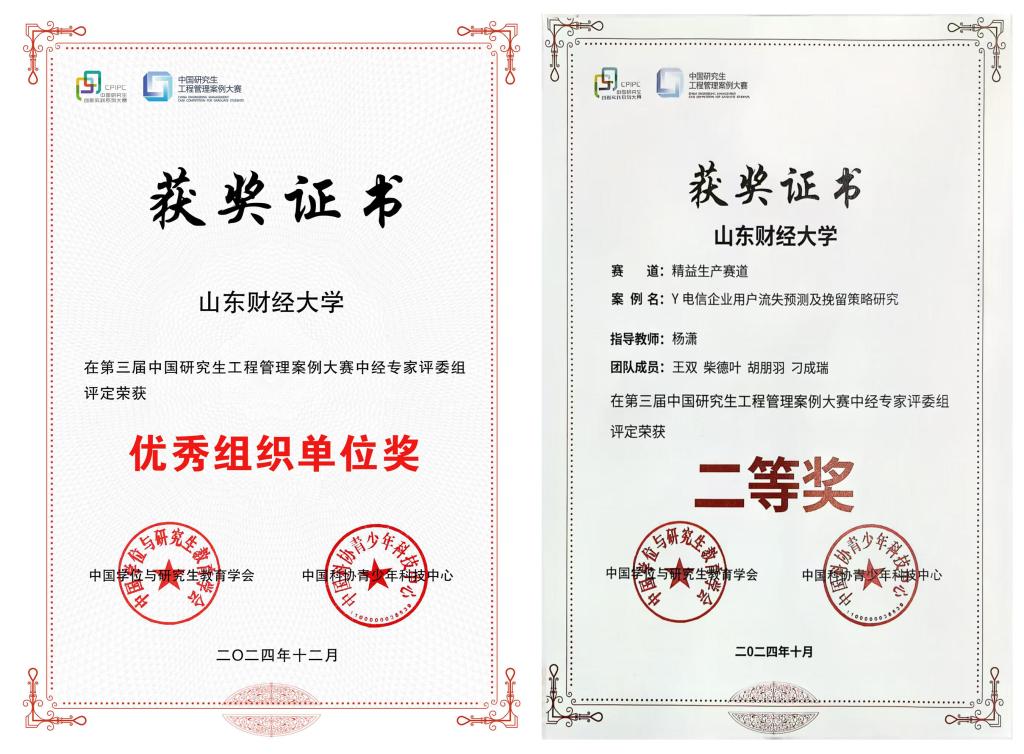 大赛分为初赛和决赛两个阶段。初赛阶段共收到来自187家研究生培养单位的572个案例,经专家匿名评审,共71支案例队伍晋级决赛。我校“卓越精益队”在指导教师杨潇带领指导下,针对Y电信企业的用户流失现象展开研究,参赛研究生王双、柴德叶、胡朋羽、刁成瑞凭借扎实的专业知识、敏锐的问题意识和出色的分析能力脱颖而出,晋级决赛并最终荣获全国二等奖。该案例建立了用户流失预测模型,制定了有效的用户挽留策略,体现了我校研究生学子对服务国家重大战略需求和区域经济社会发展需要等社会现实问题的关注和思考。近年来,学校高度重视案例教学创新与改革工作,探索案例研究与案例教学路径,提升专业学位研究生培养质量。各研究生培养学院不断加强系统谋划,健全案例教学体系,取得了系列研究生培养成果,助力学校案例建设进入发展新阶段。