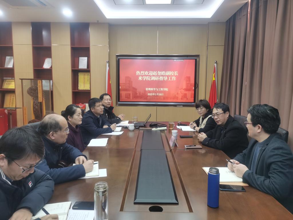 2月18日,副校长赵奎皓到管理科学与工程学院开展调研座谈,检查指导开学前准备工作。