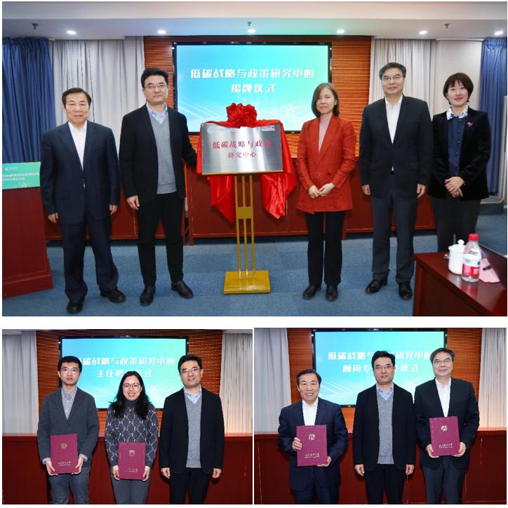 胡敏和中国国际低碳学院执行院长王璟珉介绍了低碳战略与政策研究中心成立背景、使命目标及未来工作计划。赵忠秀、戴彦德、胡敏、彭红枫和王璟珉共同为低碳战略与政策研究中心揭牌,彭红枫为中心联合主任、顾问专家颁发聘书。