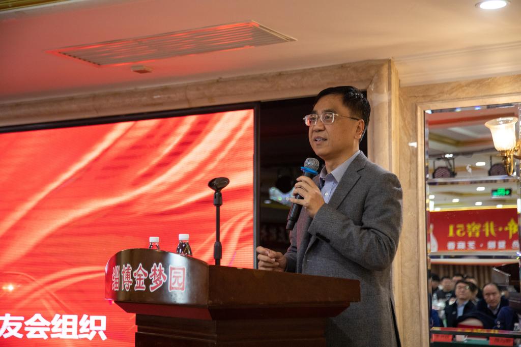 张新在致辞中向与会代表表达诚挚问候,对淄博校友组织去年换届以来在于道文校友的带领下所做的工作给予高度肯定。他简要介绍了2024年学校在学科建设、服务社会发展等方面取得的成果,学校的美誉度和大学排名进一步提升;学校的校友工作和各地校友组织活动开展情况以及知名校友对学校发展的关心关注。他强调,学校始终关注校友发展,将持续深化校友组织建设,通过打造多元化交流平台,传递“互动、互助、互爱”的校友文化,实现校友与母校的双向赋能。他希望淄博校友组织继续发挥桥梁纽带作用,为校友、学校和地方经济社会发展贡献更大力量。
