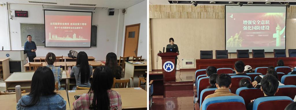 法学院和马克思主义学院分别举办了宣传讲座。法学院退役复学学生杨新辉作为主讲人,向同学们普及国家安全相关常识,介绍目前我国面临的各种传统与非传统安全威胁。马克思主义学院李国选副教授结合时事热点与典型案例,系统讲解了总体国家安全观的“五大要素”“十个坚持”等核心要义,并对政治安全、网络安全、科技安全等领域的风险挑战进行深刻剖析。