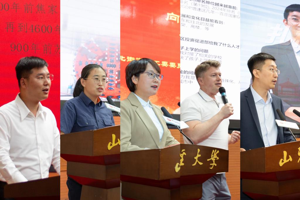 在同期举办的“海右人才·驻济高校行”宣讲会上,5位来自不同领域的优秀人才代表分享了他们在济南的奋斗故事。自主研发领域代表孟晓宁参与研发全球最大直径盾构机“山河号”;乡村振兴创业者穆峰通过“龙山味道梦工厂”推动传统工艺智能化革新;“人民满意的公务员”江昊杰分享了基层工作心得;外籍员工王赛博讲述了在济工作生活体验;我校2009级校友张洋结合金融行业经历,寄语学弟学妹以母校为基扎根济南,实现个人与城市价值共赢。300余名师生代表聆听了宣讲报告。