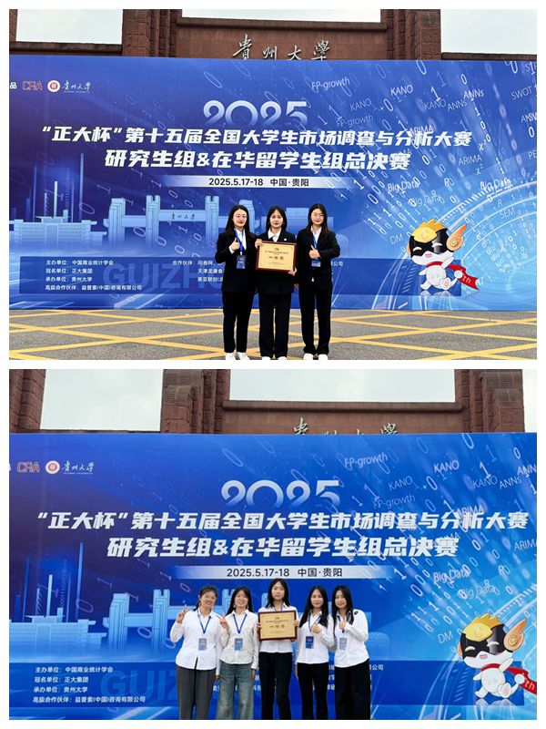 5月17日—19日,“正大杯”第十五届全国大学生市场调查与分析大赛研究生组全国总决赛在贵州大学落幕。我校统计与数学学院学子在大赛中勇创佳绩,展现了过硬的专业素养和实践创新能力。
