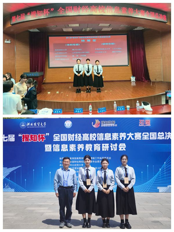 5月17日—18日,第七届“搜知杯”全国财经高校信息素养大赛总决赛在河北经贸大学举行,我校代表队在总决赛中表现突出,取得总成绩第二名的优异成绩,荣获特等奖,刷新了我校参加该项赛事的最好成绩。指导老师张正禄获本科生组最佳指导教师奖,我校获大赛组织奖。