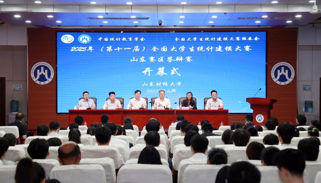 6月7日,2025年(第十一届)全国大学生统计建模大赛山东赛区答辩赛在我校成功举办。山东省统计局党组成员、副局长、山东省统计学会会长傅相国,山东财经大学党委委员、副校长王敬政出席开幕式并致辞。